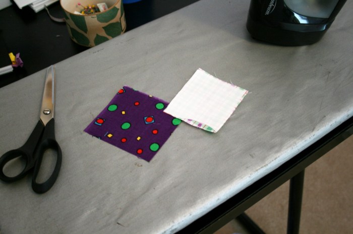 After playing around with basic typography in Word, I decided on a VERY simple pattern for his monogram and printed it out. After choosing the fabrics to use for each letter, I snipped a piece big enough to cut two of each and did the same with the fusible webbing. I like to use the fusible webbing with paper on one side so that you can fuse it to the fabric and then draw on the paper side. I cut the letters out and used them as a pattern to trace the design onto the paper of the fusible webbing and fabric. This process makes for a nice straight line once each tiny piece is cut out.