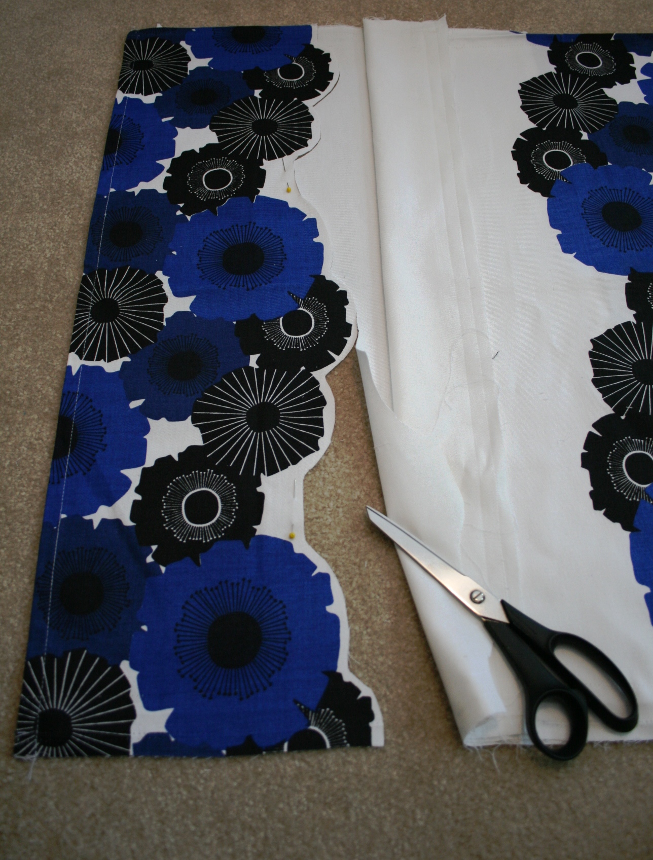 I decided to allow for a slight deconstructed look with this project, using the top stitching on both the curtain and the valance. Plus, rather than doubling up and encasing the curved edge of the valance for a crisp finished look, I opted to reenforce the cut edge with a straight stitch instead.