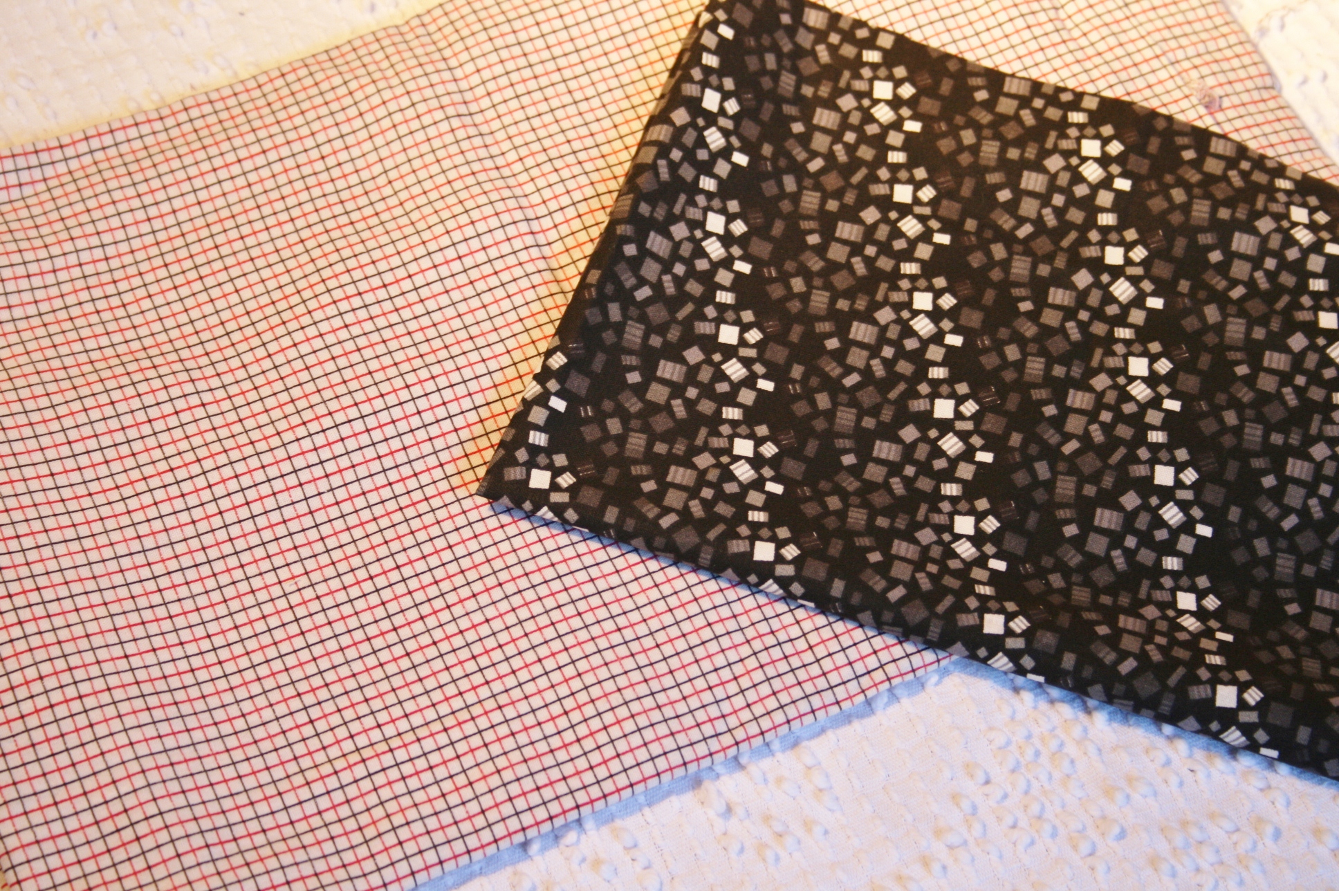 The black and gray geometric patterned piece is a newer purchase for another project and the red, black and white checkerboard piece was from my vintage pile.