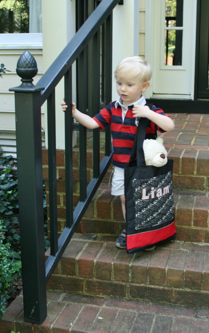 Right after purchasing a brand new backpack for my son his preschool teacher informed us that they prefer the kids to use tote bags. Wah-wuh. Of course the reason behind this preference is more than perfectly acceptable- it helps the little ones get their precious artwork home without crumpling it all up. Ok, I get it. Backpack goes in the return pile and tote bag search begins. I figured a quick trip to Target and we would be all set up. Unfortunately all the back to school stuff has been replaced with Halloween décor and costumes, so we were out of luck.