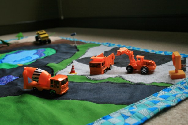 A while back I wrote about trying to come up with cute kid’s toys and gifts that could be sewn. Not only did I want to create something interesting and fun, but sometimes sewing can help keep the cost down to you while making something priceless for someone else. My two-year old son’s friend was the guinea pig for my first attempt at a toy car mat.