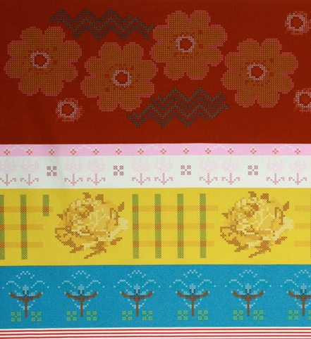 Basically the fabric patterns are all made from little cross marks just like a cross stitch pattern. Not only would this be fun to create useful items with, but it would be super fun to break out the embroidery thread to embellish the finished products.