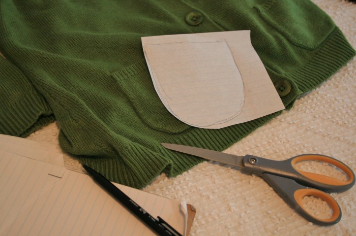 I started by just tracing the pocket outline onto a sheet of paper and cutting it out to make a template. Then I used it to cut two patch pocket pieces from the vintage fabric, adding about a 1/4 inch seam allowance.