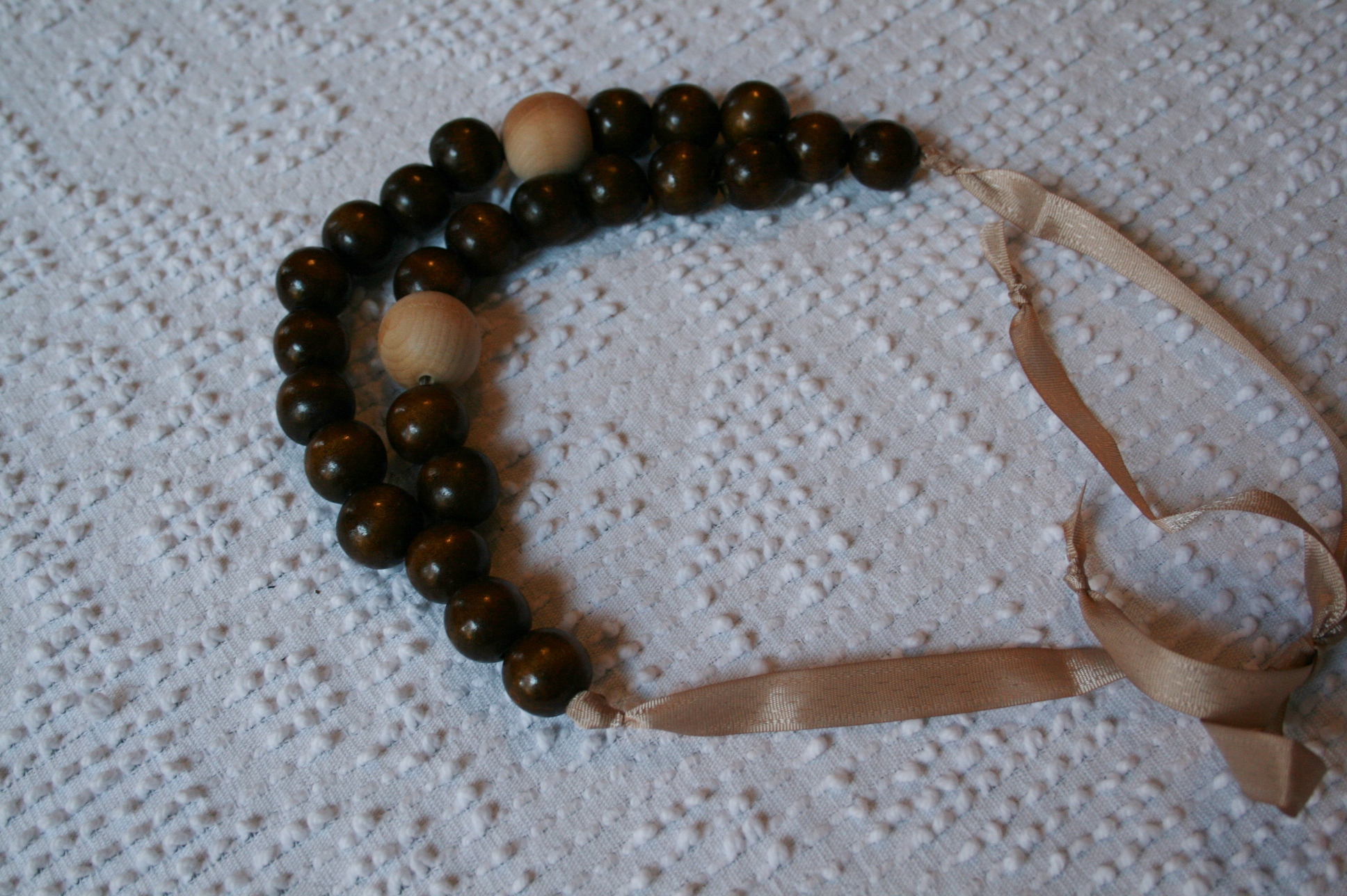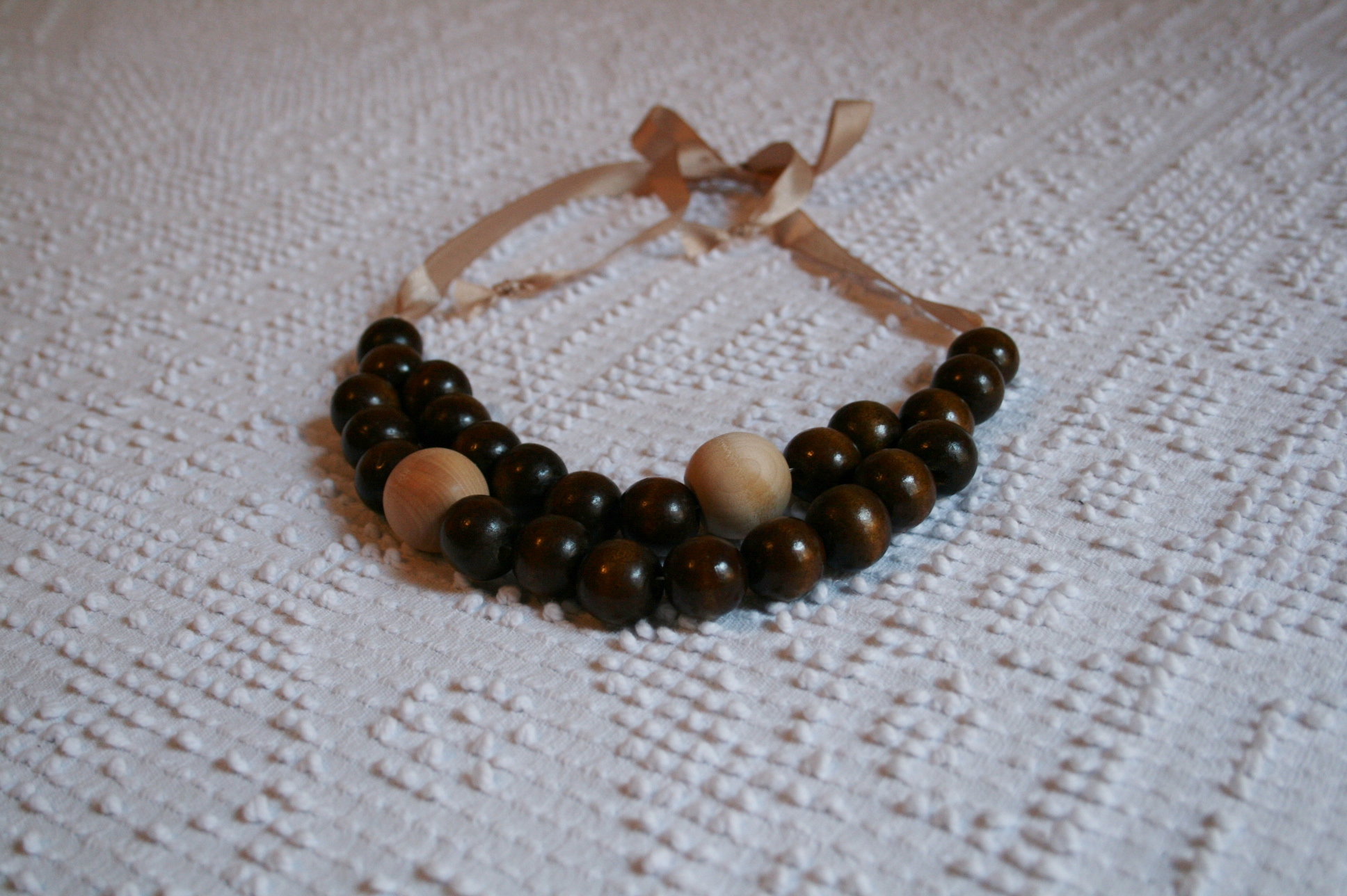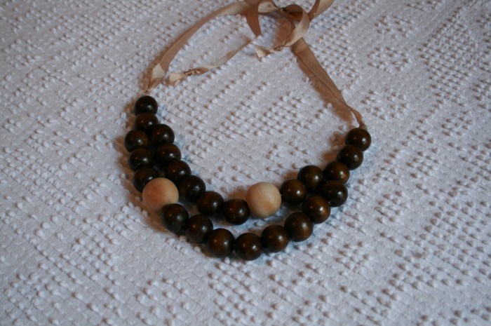 So, with my dark stained wooden bead necklace in hand I set out to create something new.