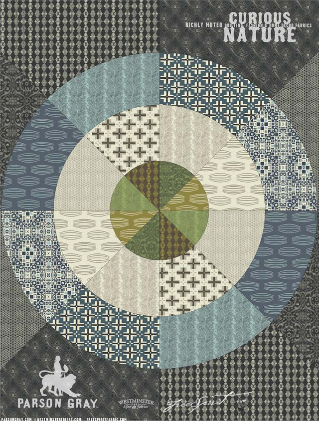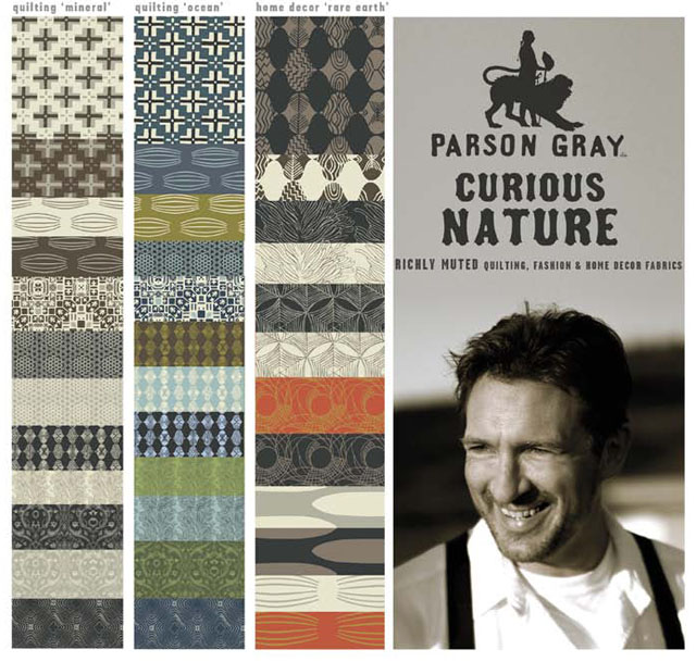 Yep, that’s right, Amy Butler’s husband, David has created his own line of fabrics under the name Parson Gray, and they are pretty wicked awesome!  Freespirit will be manufacturing the line called Curious Nature with both quilt and home dec weight fabrics.  They appear to be scheduled for release this coming February.  As a teaser Freespirit has already offered up a quilt pattern that David designed.