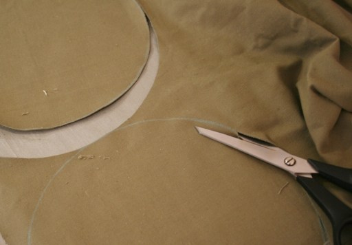 After cutting out the template, I used it to draw the circles onto the velveteen and then I cut out the circles, four total.