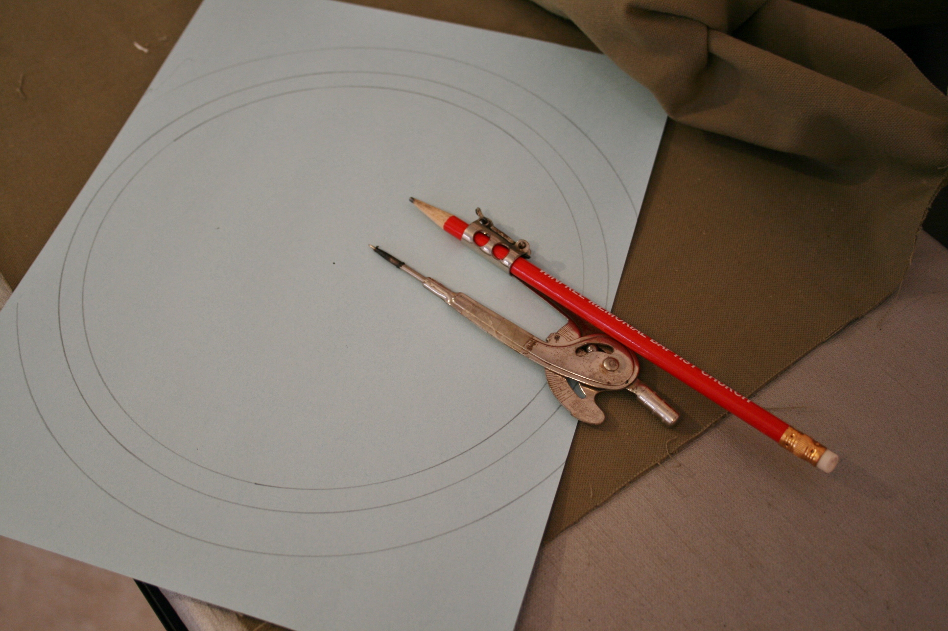 Next, I created a paper pattern for the round end of the bolster using just an old fashioned compass to aid in drawing the circle.