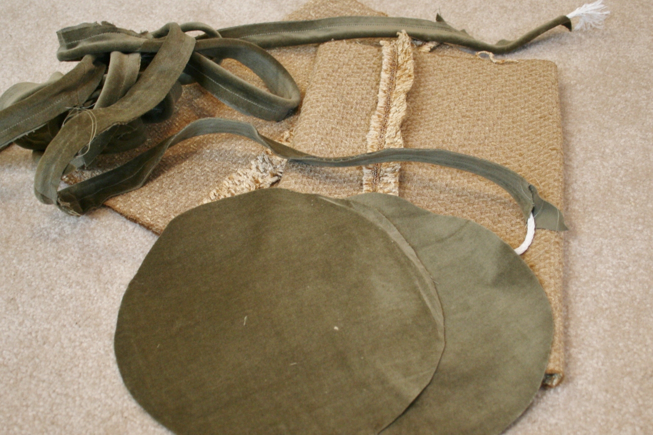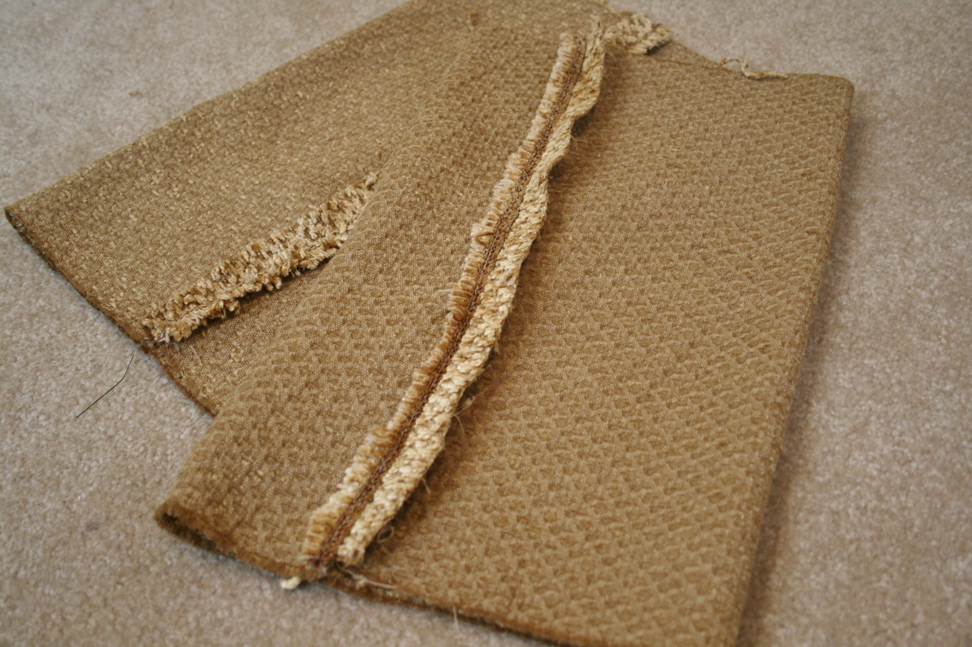 They measured approximately 16 inches by 20 inches. I paired this with more of the sage green cotton velveteen that was left over from another project. I started by stitching the short ends together to create the body of the bolster.