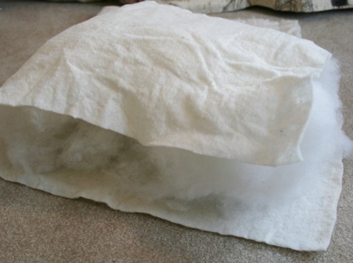 To get a really nice, filled out pillow you will need to add more stuffing. I rolled the ends of the batting back and took my time adding more filling and smoothing as I went along. That way the end result was free of folds and lumps, and fully stuffed from end to end.