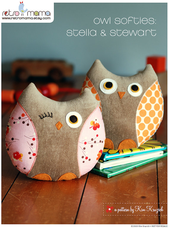 Stella and Stewart Owl Softies Pattern. At eight she may be past the stuffed animal stage, but I figured this would be a good way to get a feel for pillow making. Plus, in the end she will have these adorable little owls to put on her bed. This pattern will just be added to the package coming her way. There are so many fabric options with these that I wanted to let her decide what works for best for her.