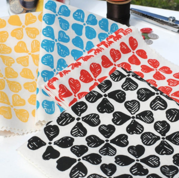 In my never-ending search for cool fabrics and neat shops with creative handmade items I stumbled upon this little gem called, Astrid Weigel. Astrid hails from Glasgow Scotland and she creates some of the prettiest and somehow both vintage and modern styled products. Not only does she have some lovely finished items for sale, but she also sells fabric panels hand printed with her original designs. In the spirit of the coming holiday I am featuring some of the items worthy of a little Valentine love.