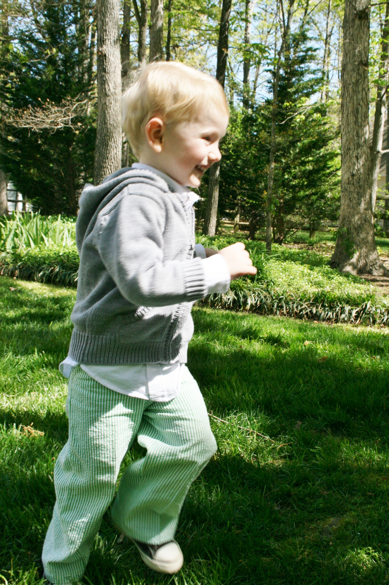 I had hoped to use some of the extra fabric to create a matching necktie, but I ran out of time. Plus, it ended up being a chilly morning which necessitated a sweater, so the tie would have just been lost behind the zipper anyway. My Little Guy really liked them and he received lots of compliments. When I picked him up at Sunday School after Easter Service I smiled at how all the kids in the room matched in their pastel Easter clothes. They were like little Easter eggs running around all hyped up on candy! Cute!