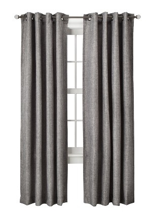 I’m sure many of you are like me in that you see textile items for what they are, fabric! So, when thrifting I often sift through the housewares textile section, not only in hopes of finding the occasional vintage piece, but to add to my newer fabric stash as well. There is nothing like finding old bedspreads, sheets and curtains to get me all giddy thinking of what ALL THAT FABRIC can make! So, you can imagine my excitement when I came across a tweedy curtain panel in shades of gray a few weeks back at the Goodwill. At 54″ X 84″ and apparently brand new from Target, I could see lots of potential. The $4.99 price tag didn’t hurt much either, especially since these are normally around $33.00 a panel. WOOT to the BUDGET!